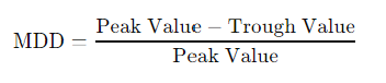 MDD는 최대 낙폭을 의미하며, 특정 기간 동안 포트폴리오가 가장 크게 하락한 수준을 측정함. 이는 투자자에게 얼마나 큰 손실을 경험할 수 있는지를 보여줌.