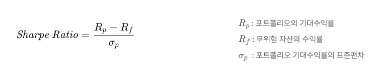 따라서 동일한 수익률을 가진 전략들 간 비교 시에도 Sharpe Ratio가 높을수록 더 리스크에 잘 대비한 우수한 전략으로 평가할 수 있음.